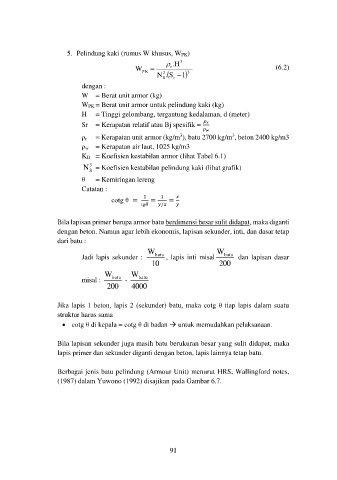 KD = Koefisien kestabilan armor (lihat Tabel 6.1)