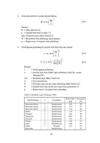 Tabel 6.2 Koefisien Lapis (Triatmojo, 1996)