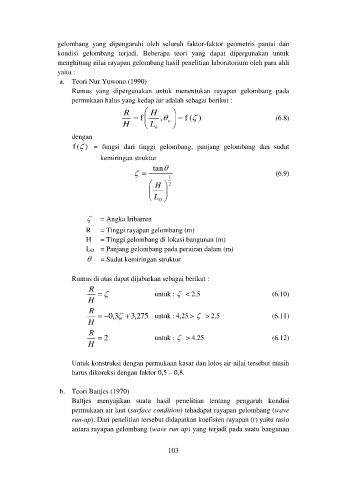 Battjes menyajikan suatu hasil penelitian tentang pengaruh kondisi
