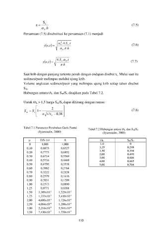 (Syamsudin, 2000) Tabel 7.2 Hubungan antara t/tL dan Sm/So