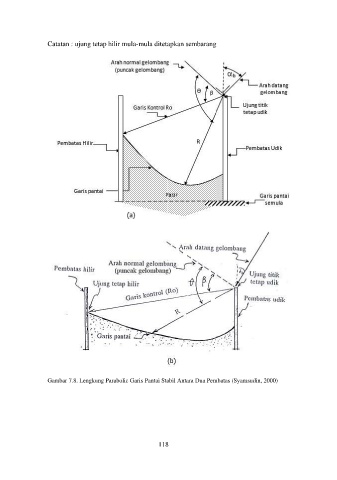 Catatan : ujung tetap hilir mula-mula ditetapkan sembarang Gambar 7.8. Lengkung Parabolic Garis Pantai Stabil Antara Dua Pembatas (Syamsudin, 2000) 118
