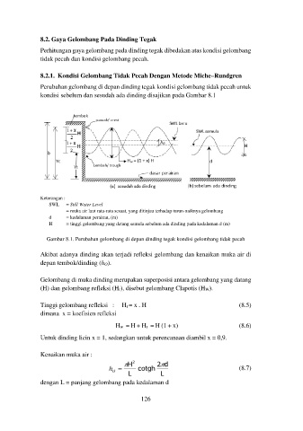 Tinggi gelombang refleksi : Hr = x . H (8.5)