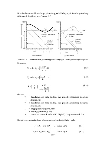 Gambar 8.2. Distribusi tekanan gelombang pada dinding tegak kondisi gelombang tidak pecah