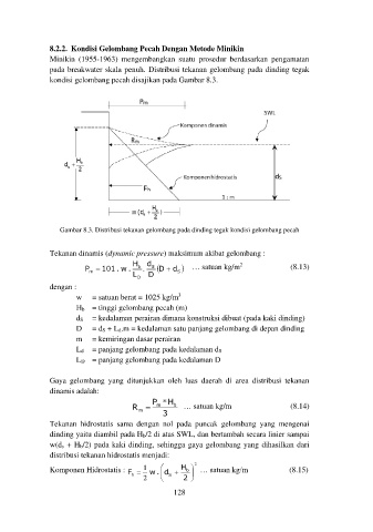 Gambar 8.3. Distribusi tekanan gelombang pada dinding tegak kondisi gelombang pecah