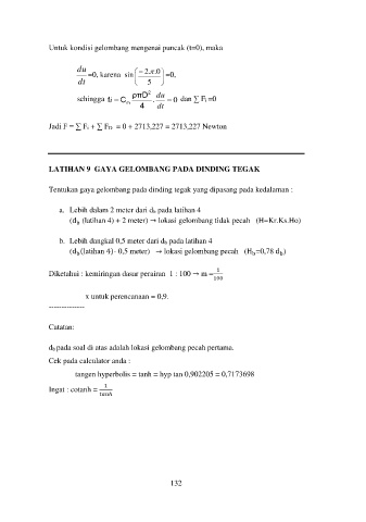 (d (latihan 4)- 0,5 meter) → lokasi gelombang pecah (H =0,78 d )