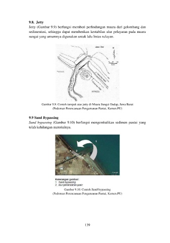 Sand bypassing (Gambar 9.10) berfungsi mengembalikan sedimen pantai yang