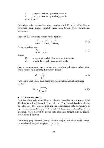koefisien refraksi gelombang dirumuskan dengan :