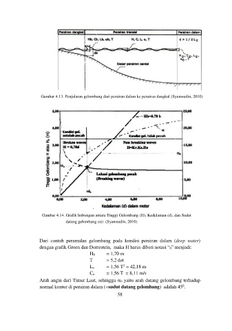 normal kontur di perairan dalam (=sudut datang gelombang) adalah 45 .