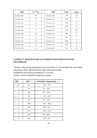 gelombang (ADG) dan arah pantai seperti pada tabel berikut.