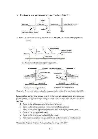 c. Erosi dan akresi karena adanya groin (Gambar 5.3 dan 5.4)